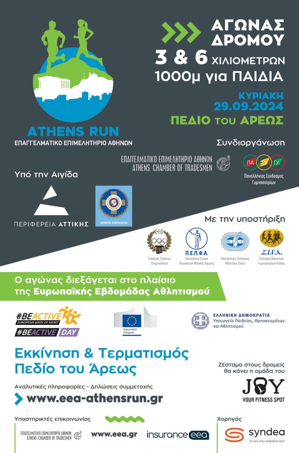 Αυτήν την Κυριακή 29 Σεπτεμβρίου 2024 και ώρα 10:30 το Επαγγελματικό Επιμελητήριο Αθηνών διοργανώνει τον αγώνα “EEA Athens Run” με σημείο εκκίνησης το Πεδίον του Άρεως. Ο αγώνας διοργανώνεται με αφορμή την Παγκόσμια Ημέρα Καρδιάς, πραγματοποιείται υπό την αιγίδα της Περιφέρειας Αττικής και αποτελεί μια εξαιρετικά σημαντική αθλητική εκδήλωση, καθώς φιλοδοξεί να στείλει ένα ηχηρό μήνυμα ευεξίας, ευγενούς άμιλλας αλλά και προστασίας της υγείας όλων μας.