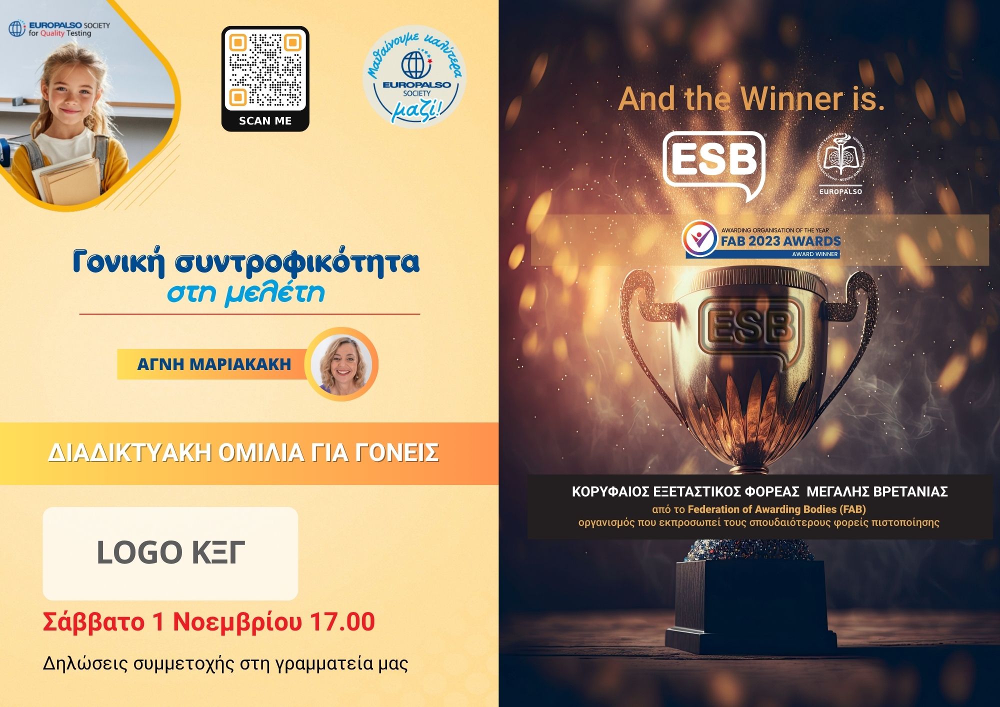 Το Webinar αυτό είναι μια καλή αφορμή για να καλέσετε τους γονείς σε μια όμορφη συνάντηση στο Κέντρο σας για δια ζώσης ή διαδικτυακή παρακολούθηση της ομιλίας. Συνάδελφοι, σε όλη τη διάρκεια της σχολικής χρονιάς θα δημιουργούμε ευκαιρίες για να φέρνετε τους γονείς μέσα στο σχολείο σας. Έτσι, θα βλέπουν σε τακτά διαστήματα τους χώρους σας, τη δουλειά σας και τις εμπειρίες ζωής που δίνετε στους μαθητές σας. Επιπλέον, θα μπορείτε να τους μιλήσετε εγκαίρως για τα προγράμματα σας και την αξία ενός οργανωμένου Κέντρου Ξένων Γλωσσών σε αντίθεση με τα στείρα ιδιαίτερα μαθήματα.
